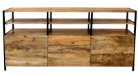 Industriální TV komoda GITA TV160M (160×45×75 cm z masivu manga) – robustní nízká komoda pro obývací pokoj, která kombinuje dřevo a kov v typickém industriálním duchu.