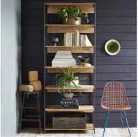 Industriální knihovna GITA KN90 (90×35×213 cm z masivu manga) – vysoká knihovna, která poskytne otevřený úložný systém pro knihy i dekorace.