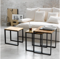 Sada industriálních odkládacích stolků GITA OST – sada tří stolků (např. 50×40×50 cm a podobné rozměry) vhodných jako doplňkové kusy v obývacím prostoru.