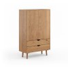 Designová šatní skříň Ravello vyrobena z přírodního dubu doplněná o LED osvětlení v horní části skříně. Skříň je vybavena panty Hettich s funkcí měkkého dovírání.